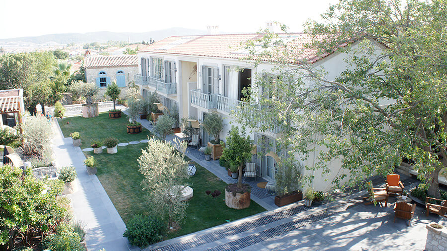 Alaçatı's historical texture. The hotel includes Mitu Café